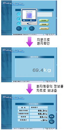 1. 신장실인 경우 환자의 지문으로 체중을 재면 DoctorsChart와 연계하여 Hemo Chart에